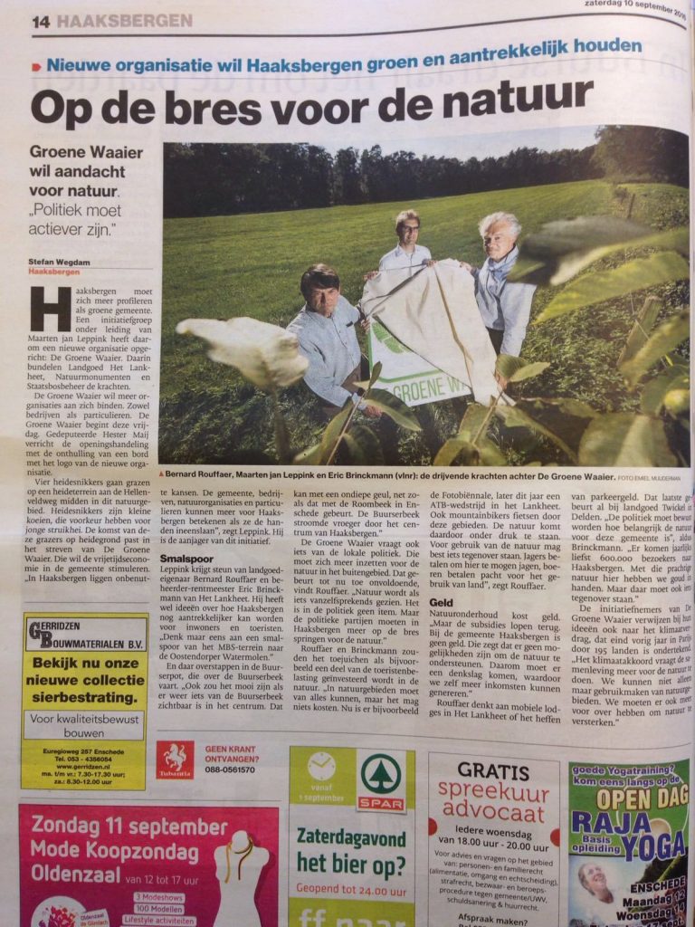 HAAKSBERGEN- De verrassing was groot toen het bestuur van de Groene Waaier in Haaksbergen te horen kreeg dat zij genomineerd waren voor een compliment. Water
